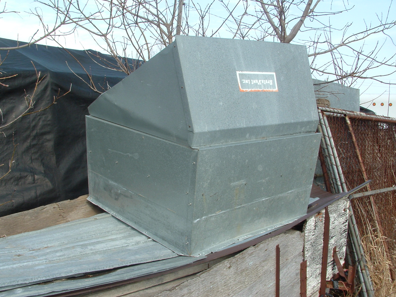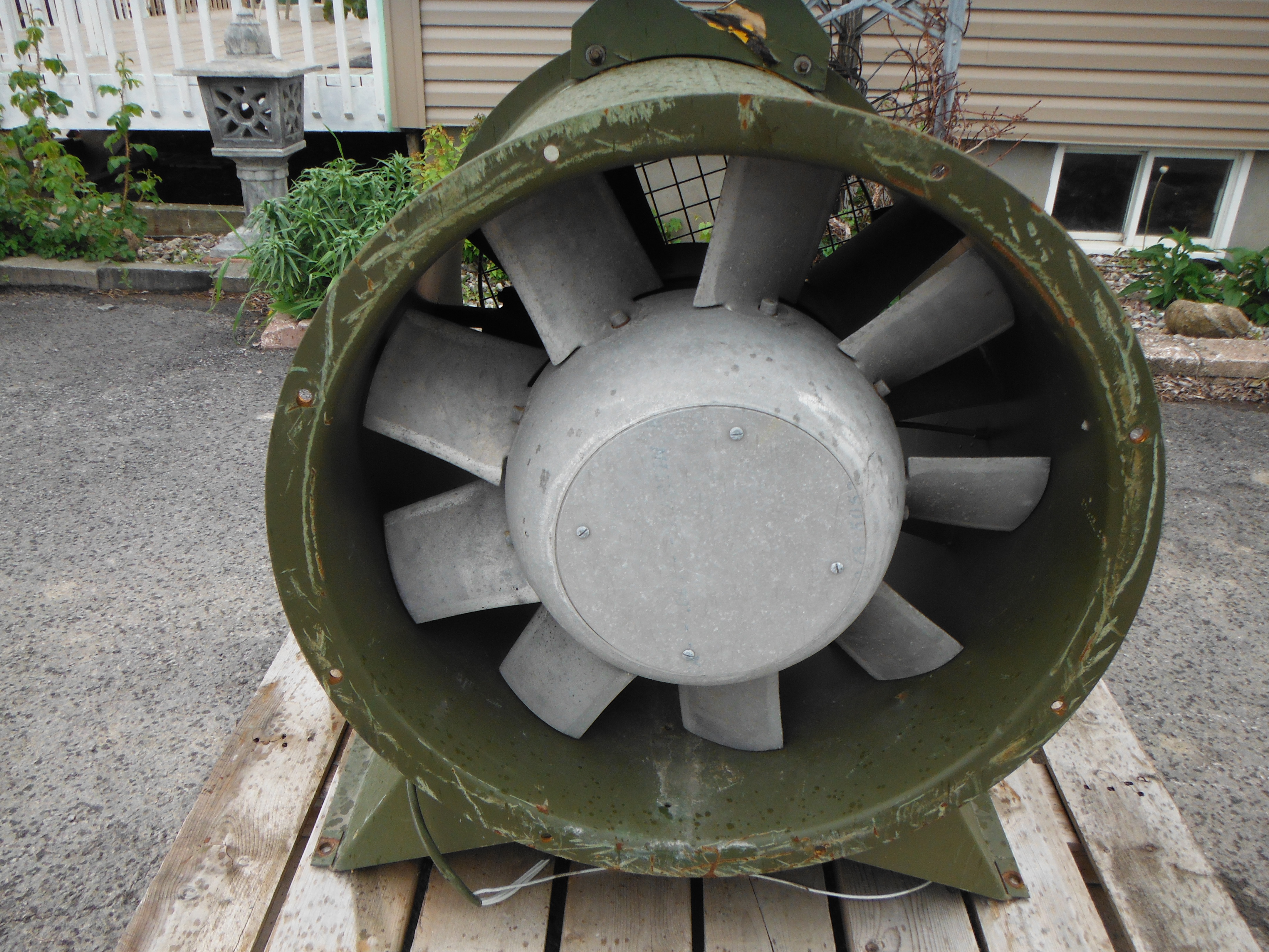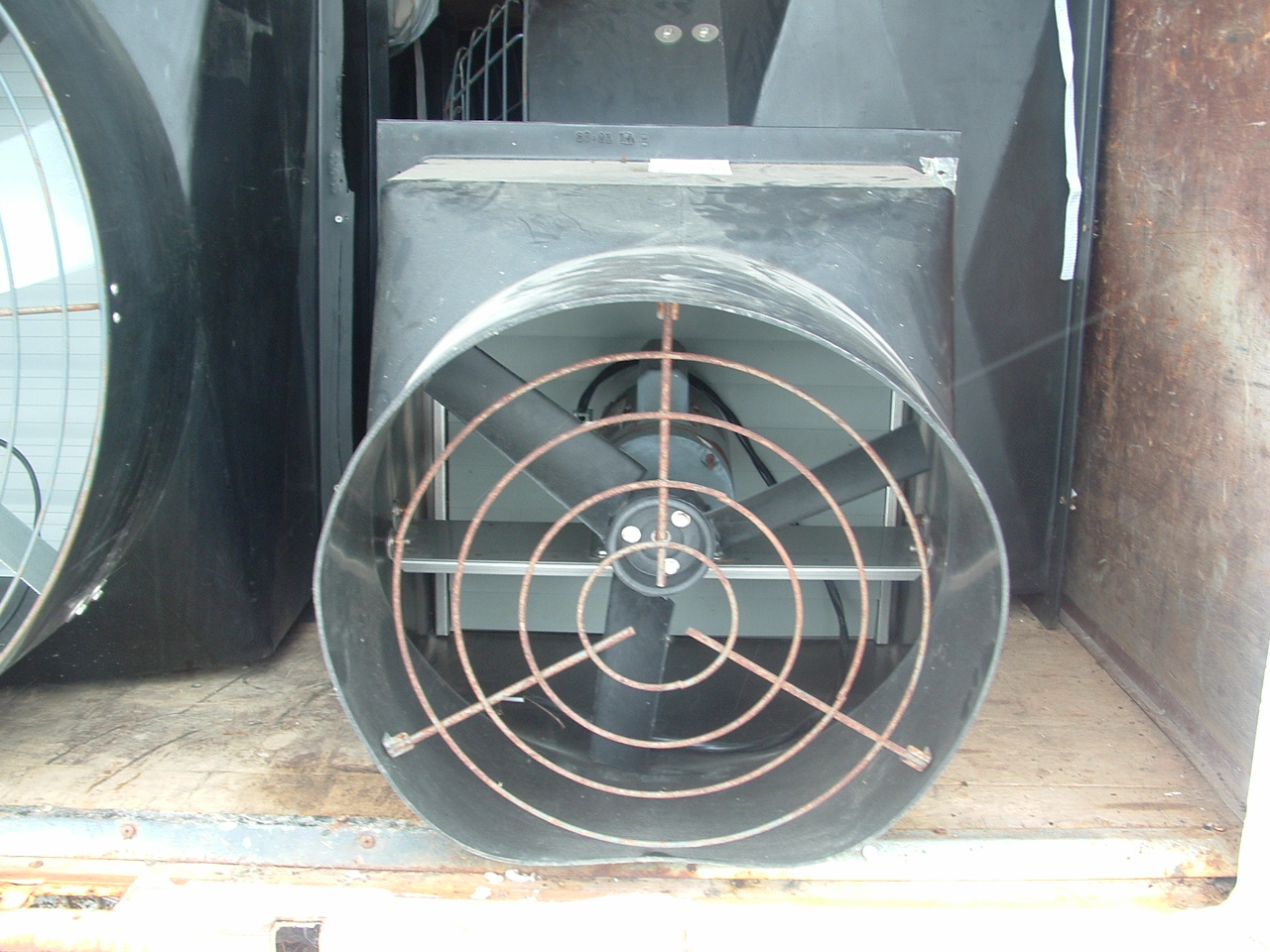Fan 12", Box Hole 22", motor 120 Volt. Fiberglass Hood. Like New.
